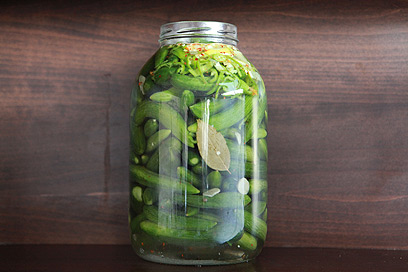 - המלפפונים חמוצים ומוכנים לאכילה לאחר חמישה ימים.