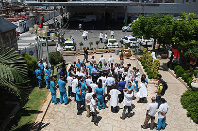 מתמחים במחאה, אתמול בבית החולים רמב"ם (צילום: אבישג שאר ישוב)