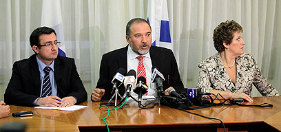 השר ליברמן וח"כ קירשנבאום. ישראל ביתנו מזהירה (צילום: נועם מושקוביץ)