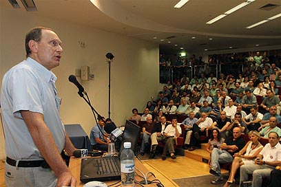 אידלמן נואם בפני הרופאים באיכילוב, הבוקר (צילום: עופר עמרם)