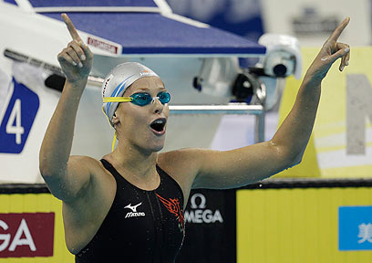 פדריקה פלגריני חוגגת בבריכה בשנגחאי (צילום: AP)