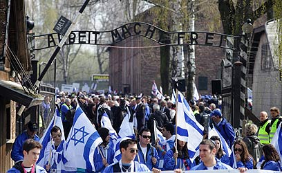 מצעד החיים בפולין. "להעמיק את הידע של בני הנוער" (צילום: AFP)
