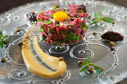 - מניחים את החלמון החי במרכז עיגול הבשר ומגישים (ניתן להכין ביצים עלומות המקום החלמון החי). רצוי להשתמש בחלמון ביצת שליו.