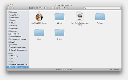 - לחצו על התיקייה Contents -> SharedSupport ומתוכה גררו את הקובץ InstallESD.dmg אל שולחן העבודה.