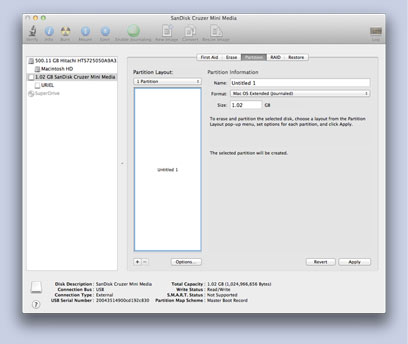 כעת רכשו או קחו דיסק און קי בנפח של שמונה גיגהבייט והפעילו את התוכנה Disk Utility.