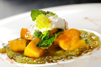 - הרכבת המנה: חותכים את המנגו לקוביות ומוסיפים לו מעט נענע קצוצה. מניחים את הטפיוקה במרכז הצלחת, עליה את סלט המנגו ומעליו כפית של קרם פרש, ובתיאבון.