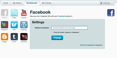 לאחר הרישום תגיעו לעמוד החשבון שלכם. שם בחרו בלשונית My Network. כאן תמצאו לחבר את פרופיל ה-Qik שלכם לרשתות חברתיות שונות. בעזרת הכלי הזה תוכלו לפרסם במהירות אל העובדה שאתם מתחילים בשידור.