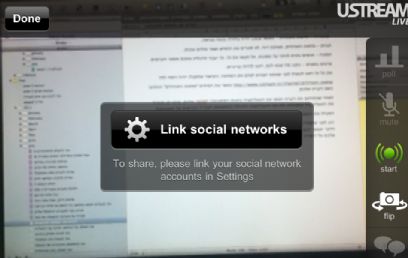 רגע לפני שתשדרו האפליקציה תציעה לכם לחבר את החשבון שלכם לחשבונות ברשתות החברתיות, הדבר יאפשר לכם לפרסם מיד קישור אל הערוץ שלכם על הקיר, וכך למשוך את העוקבים והחברים שלכם אל השידור.