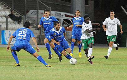 דקה חמישית: סיידו יאיה הותיר את מוחמד גאדיר חופשי מול השער, החלוץ הירוק בעט חזק - דני עומס הדף היטב לקרן.