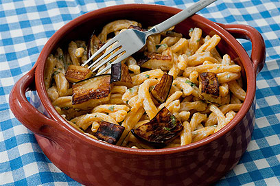סלט פסטה עם רוטב יוגורט וחצילים קלויים (צילום: ירון ברנר)