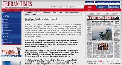 במאמר ארוך במיוחד, שכותרתו "ההתקוממות בישראל: תחילת הסוף", ציין העיתון כי כלי תקשורת ניסו להמעיט בערך המחאה בישראל ולטעון כי היא אינה קוראת לדמוקרטיה - כמו במדינות ערב - אלא לשינוי כלכלי. ב"טהרן טיימס" הדגישו, עם זאת, את קווי הדמיון וטענו כי המחאות בתוניסיה, מצרים, תימן, ירדן ועומאן החלו קודם כל בגלל המצב הכלכלי הקשה. "במובנים רבים, הישראלים לא שונים מהעמים הערביים שעברו מהפכות".