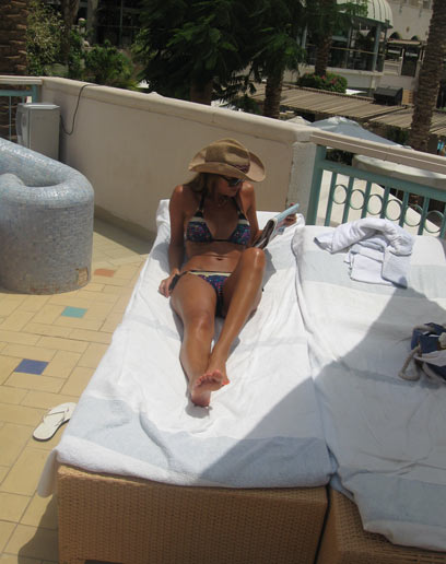 השניים העבירו את הזמן בעיקר בבטן גב בבריכה של מלון הרודס ויטאליס. דין, שקלט את עדשת המצלמה, התחמק באלגנטיות ואילו וקנין התעדכנה בחדשות כשקראה עיתון. מחר דין אמור לטוס לחופשה בארצות הברית, ווקנין בחרה להישאר בארץ ולטפל בסטודיו החדש שלה. מבחינתנו היא יכולה להישאר באילת.