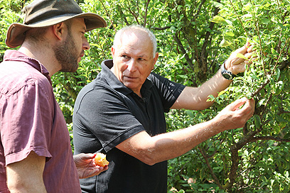 יגאל חן מסביר לאורי על הדברה מופחתת (צילום: אסף רונן)