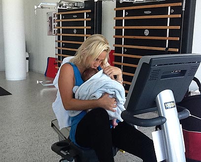 אולי יציל אותה מהשמלה. מורן והתינוק עושים כושר