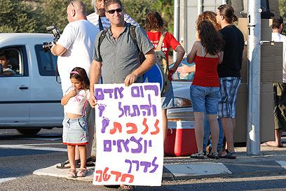 מפגינים בצומת השומרים (צילום: ג'ורג' גינסברג)