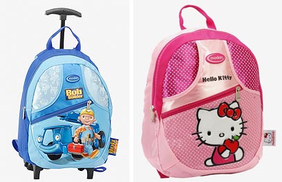 סמסוניט מציעה תיקי גן בקולקציה צבעונית הכוללת 3 דמויות שילדים אוהבים. דובי אדמוני, פיל פילון כחול ופרפר ורדרד. אחריות יצרן ל-3 שנים. מחירים: תיק גן 200 שקל, תיק טרולי 560 שקל. להשיג בחנויות תיקים מובחרות.