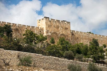 נמשיך עד לסופו של בית הקברות והר הבית. שימו לב לפינה הדרום מזרחית של הר הבית מיד עם יציאתינו משער בית הקברות. זוהי הפינה המרשימה ביותר של הר הבית ומסבירה מה היה כאן לפני 2,000 שנים. פינה זו מכונה "קרן העופל" המוזכרת בתוספתא וכיום הנה חלק מהגן הארכיאולוגי מרכז דוידסון.