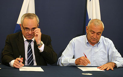 החתימה על ההסכם (צילום: גיל יוחנן)