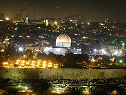 כיפת הסלע והר הבית מוארים, יש משהו מיסטי באוויר. מבט מהר הזיתים