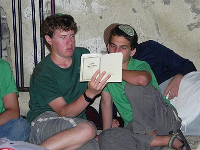 תלמידי ישיבה חולקים את קינתם זה עם זה. יש חברותא גם בערב ט' באב