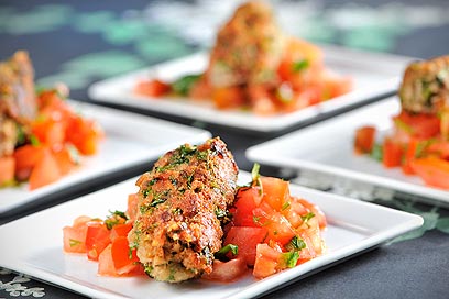 קבבוני טונה על מצע של סלט עגבניות (צילום: דודו אזולאי)