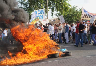 עובדי "פרי גליל" הבעירו צמיגים בחצור הגלילית