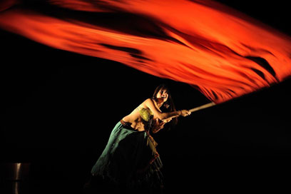 אני לוקחת את הבד הזה, יריעה ענקית וכבדה מאוד שיש לה פלסטיות מיוחדת, ויוצרת על הבמה המון דמויות. אני רוקדת נשים אפלות, סוטות, מצחיקות, מכוערות, יפהפיות. זה מאפשר לי להביע את כל הדמויות הנשיות שאני נתקלת בהן כשאני מגיעה ליישובים דתיים, למגזר הערבי, ליישובים בדואים, לחוגים של פריקיות במושבים או לתל אביביות מעודכנות.