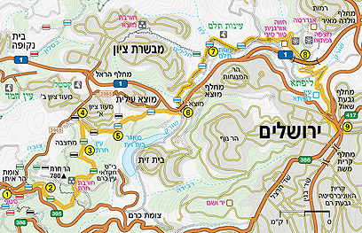מפת הטיול בשביל ירושלים