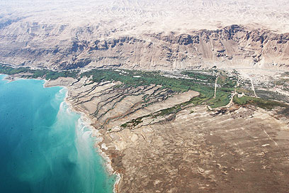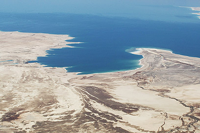 33 אחוזי מליחות לעומת 3 אחוזים בים התיכון. מבט אווירי על ים המלח