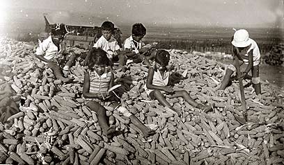 2. ילדי חברת הילדים על ערמת קלחי תירס.