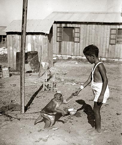 4. גם פינת חי הוקמה. אמנון לין משחק עם הקופה מקי.