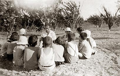 11. מדי פעם היה המחנך, פולי, מקיים שיעורים בין עצי המטע.