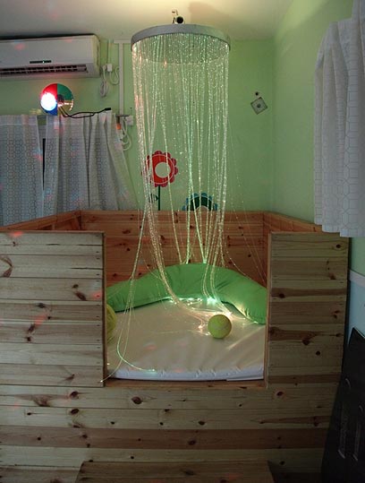 הילד, לעורר אותו לחקור את סביבתו באמצעות ציוד המפעיל את הילד בתנועה ובחושי הריח, המישוש, השמיעה והראיה. כשאני עובדת בחדר התחושות (סנוזלן) אני מאפשרת לילד עולם שקט, בטוח, לא עולם שמציף אותו, עולם שבו הילד שולט במצב ובוחר את הדרך לחוות את העולם".