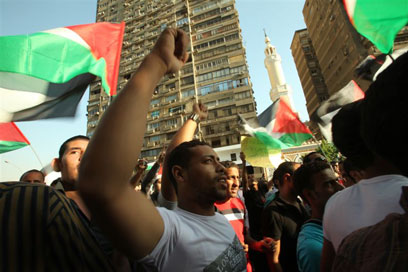 "אני שונא את ישראל ואני רוצה שיסתלקו מכאן!" אמר המפגין מול שגרירות ישראל בקהיר.