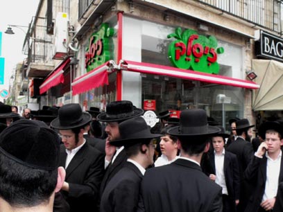 A few minutes' walk from Zisalek Ice Cream is the Greentech music shop, where Hasidic music plays in the background and one DVD in a collection of ultra-Orthodox movies is a suspense film about the battles of a rabbi against Christian missionaries.