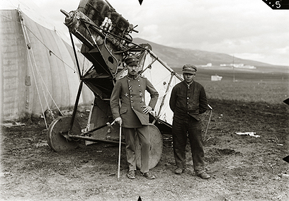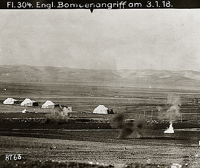 13. אנשי הטייסת מצלמים כיצד מטוסים בריטים מפציצים את מאהל הטייסת שלהם. 3-1-1918