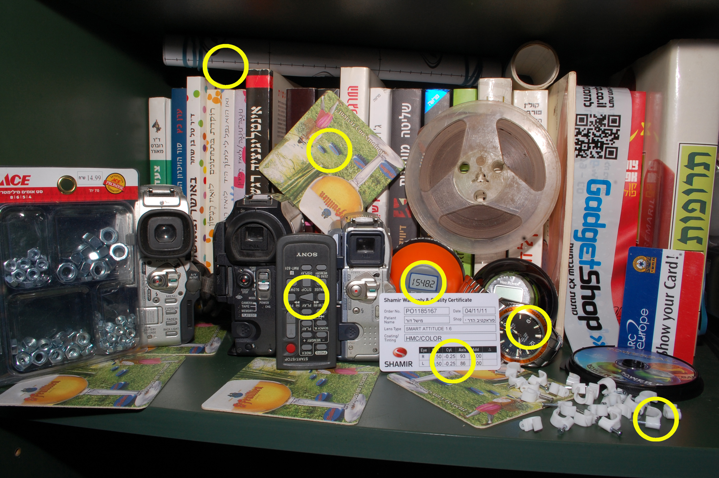 7. הדברים הלבנים האלה מצד ימין על השולחן שלבושתי איני יודעת את שמם. באחד מהם, כמעט הקיצוני ביותר מצד ימין, יש מסמר מחודד משני צדדיו. לא מוכר לי כזה דבר".