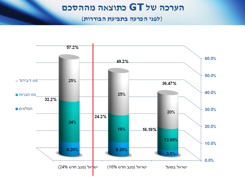 עם זאת, מפעלי ים המלח לא רק מפיקים מינרלים ממי ים המלח, הם גם מעבדים אותם ואורזים אותם וזו פעילות שיכולה לעבור לארץ אחרת עם שיעורי מס נמוכים יותר. לכן, מעוניינת המדינה להעניק לכיל הפחתת מס חברות על הפעילות שאינה קשורה ישירות בהפקת המינרלים ומתנהלים מגעים עם רשות המסים בנוגע לגובה המס שישלמו המפעלים ב-2011. ההערכה נעה בין 16% ל-24%. לכן, מעריכים באוצר את התוספת לציבור ברמה של 24.2% או 32.2% - תלוי מה יוחלט ברשות המסים.
