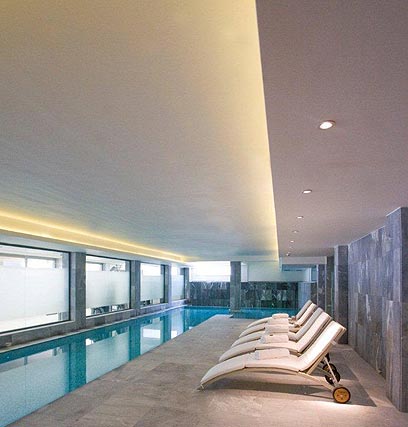 לבניית המקום נבחרו חומרי גלם יוקרתיים כאבני בזלת אפורות מאיטליה ושיש לבן בז', המעניקים לו את האלגנטיות היוקרתית והמרשימה. התאורה העדכנית ומשחקי אור חושניים הנוצרים ממי הבריכה, תורמים לספא את האווירה הנינוחה המתחייבת במקום בו מתקיימים טיפולים.