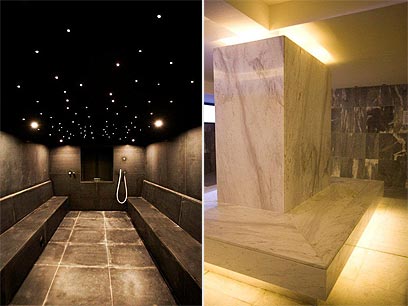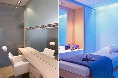 "דוגמה נוספת, חדרי הטיפולים בספא שדורשים עיצוב מיוחד, ולכל חברה המעניקה את הטיפולים יש הגדרות ספציפיות הנוגעות לסוגי שהיא מעניקה. במקרה של הספא בפריז, התבקשתי לעצב אותם באופן שבו המטופל נכנס לחדר המסאג' ורואה רק את מיטת הטיפולים וכל יתר האלמנטים חבויים בארונות. יש להבין גם שכמו בתי המרחץ הטורקים שמהווים סוג של בילוי חברתי כך גם בספא המודרני, בספא הפריזאי בניתי בר עשוי מאבן שיש אפורה וכיסאות גבוהים לשתיה משותפת. ודבר נוסף שצריך להביא בחשבון הוא המעבר בין אזורים חמים לקרים ולהפך, בספא המעבר מאזור הג'קוזי והחמאם לאזורים הקרים - מופרד על ידי קיר מראות".