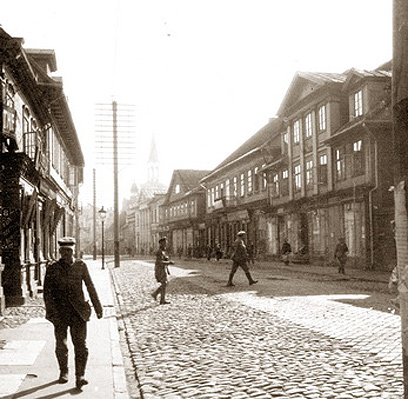 רחוב מרוצף אבן ב-מיטן (היום כבר לא מוצאים ריצוף מסוג זה). 1916
