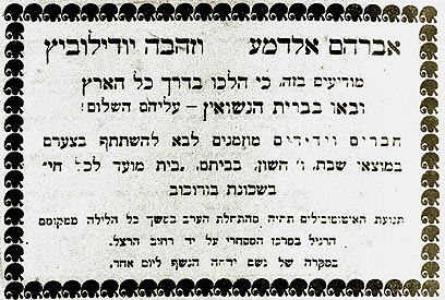 9. בעיתון "דבר" מיום ג' חשון תרפ"ו, 21 באוקטובר 1925, הזמנה לנשף נישואין בנוסח אלדמע:"אברהם אלדמע וזהבה יודילוביץ מודיעים בזה כי הלכו בדרך כל הארץ ובאו בברית הנישואין - עליהם השלום! חברים וידידים מוזמנים לבא להשתתף בצערם במוצאי שבת ו' חשון בביתם, בית מועד לכל חי בשכונת בורוכוב"
