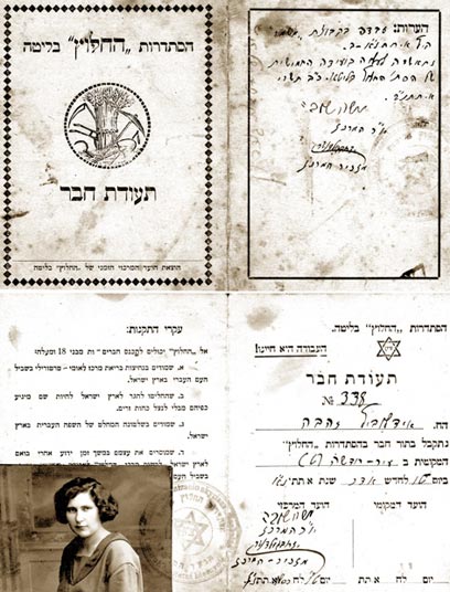 10. תעודת חבר הסתדרות החלוץ בליטא של זהבה יודילוביץ (אלדמע). בפרטי רישום התעודה נרשם שזהבה נתקבלה לחלוץ בתאריך ט"ו לחודש אדר שנת אתתנ"א, וזה לפי מניין אליעזר בן-יהודה למן חורבן בית מקדשנו. אם נוסיף לזה 70 כדי לקבל את מניין הגויים נמצא שהייתה זו שנת 1921.