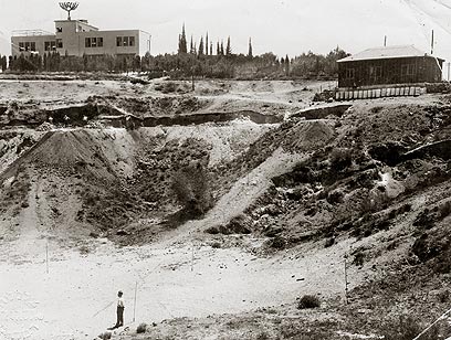 14. מועדון הנוער העובד על יד בית ספר בורוכוב, בעת תחילת העבודות להקמת האצטדיון, 1935