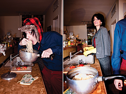 סבתא: חצאית וחולצה: H&M; ג'קט: לוני וינטג'; סיכות דש, עגילים ושעון: אוסף פרטי. קטיה: שמלה: H&M; פרווה: לוני וינטג'; צמיד וסיכת דש: דוד כהן; נעליים: אלדו
