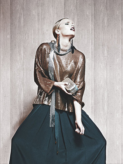 סוודר: זארה (299 שקל); חצאית: "אליז" (1175 שקל); צעיף: "אליז" (225 שקל); עגילים: ספרינג (59 שקל); תיק: אלדו (49 שקל).