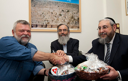 מבצע משלוחי המנות של ארגון רבני צהר וזק"א הגיע לכנסת: הרב חיים אמסלם (עם שלם) ואילן גילאון (מרצ) החליפו בינהם משלוחי מנות במעמד יו"ר ארגון רבני צהר, הרב דוד סתיו
