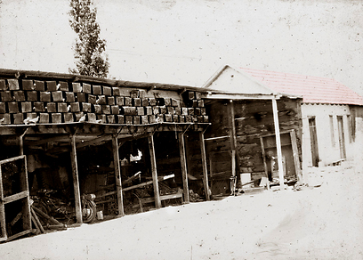 4. חולדה, סככת כלים. בגג פחי דלק רייקים