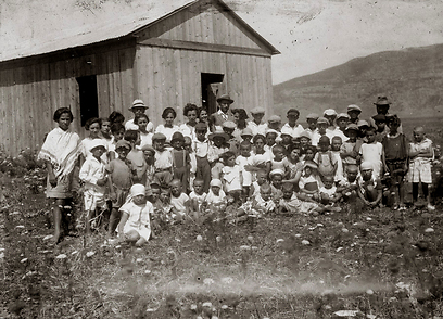 14. משפחה ערבית ליד צריף המרפאה בנחלת יעקב