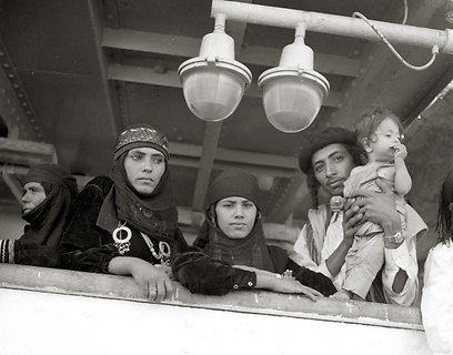 12-6. חול המועד פסח, 1962. משפחות יהודים מתימן מגיעות לישראל באונייה לנמל אילת. מזהים את הדמויות בצילומים? נשמח לקבל מכם פרטים